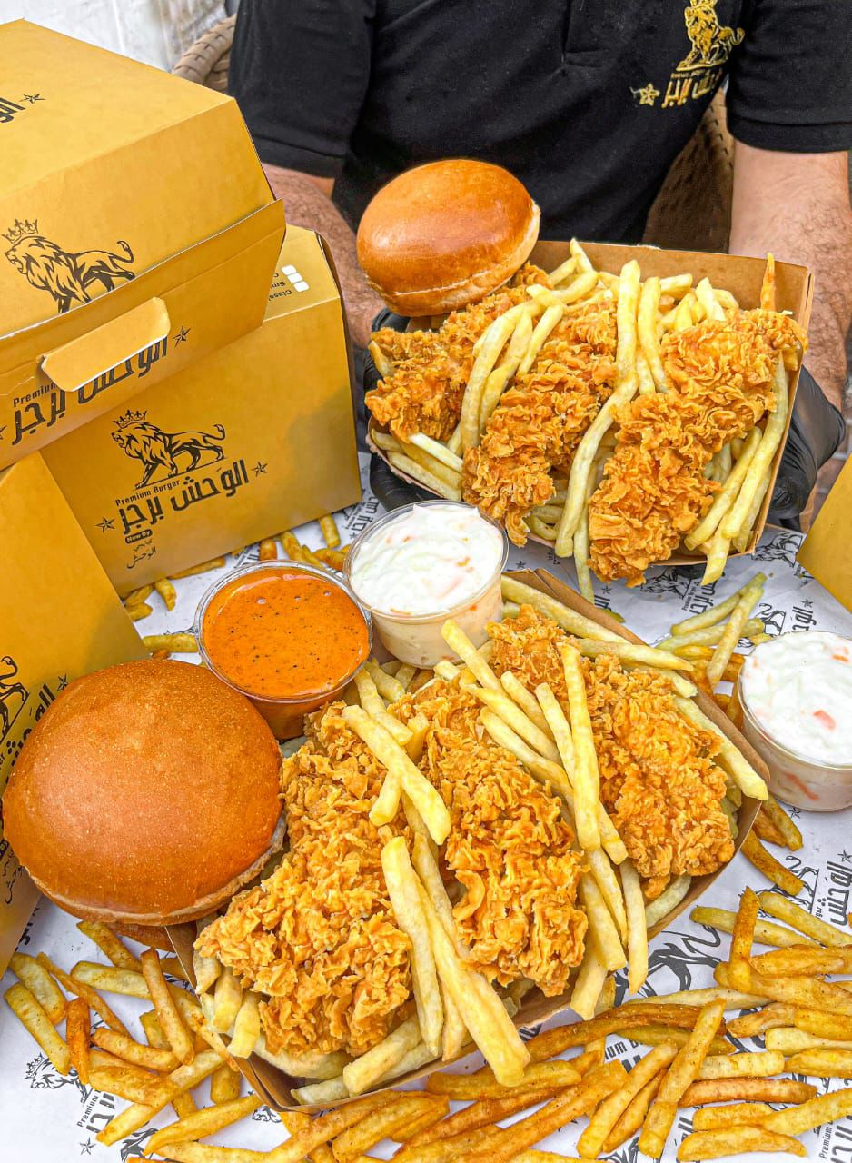 3 قطع استربس + بطاطس + خبز بريوش توست + صوص...