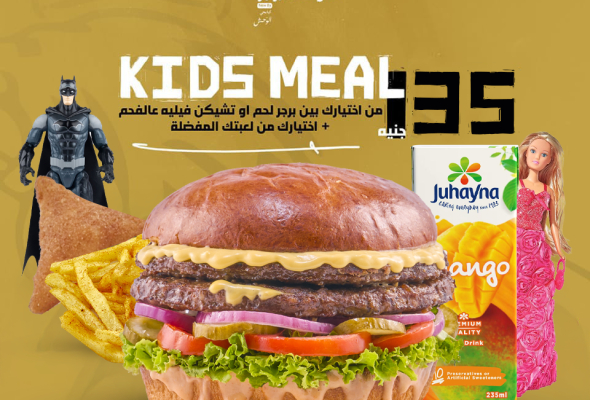 وجبة اطفال مكونة من سندوتش برجر لحم او...